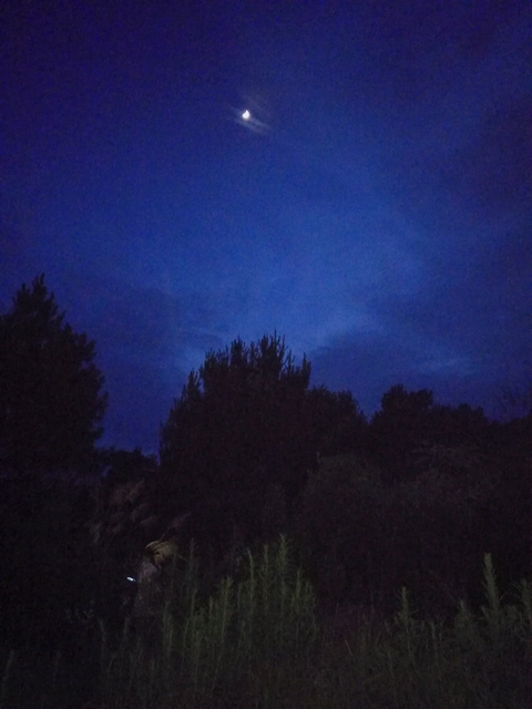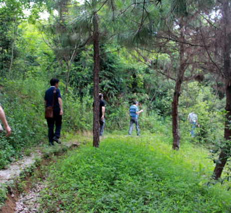 在树林里,我们都把手机的电筒开了起来,没有路,我们披荆斩棘,摸索下山的的路。
