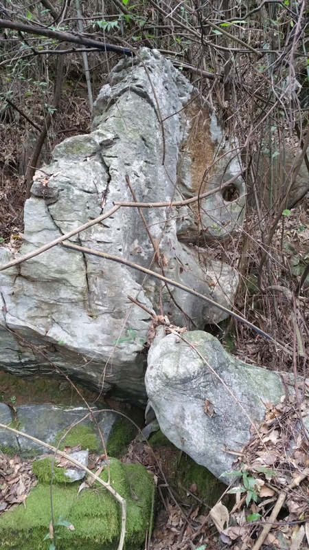 就在这座千年万年坚守岗位的雕像傍边,却是一个战场的阵地。一块块石头堆磊成的战壕,依稀可见。罗会长说,这是抗日的战场,当年国民党的部队,在这里狙击了沿京广铁路南下的日寇。