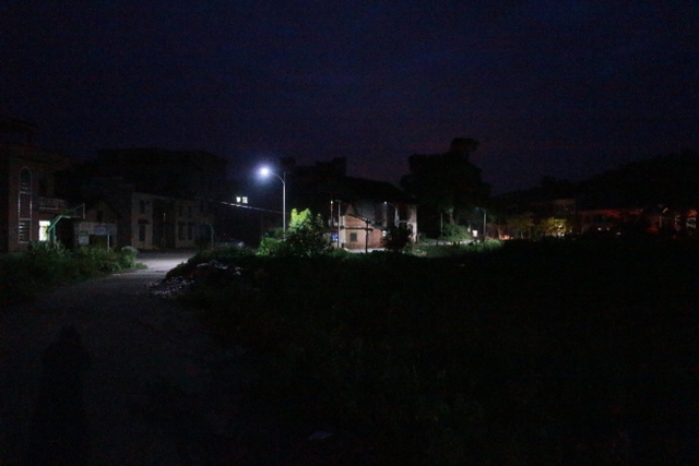 不知摔了多少次跤,终于到了山下。一轮弯月挂在天空,清辉洒满了山村。凉风习习,青蛙和虫子的叫声连绵不断。