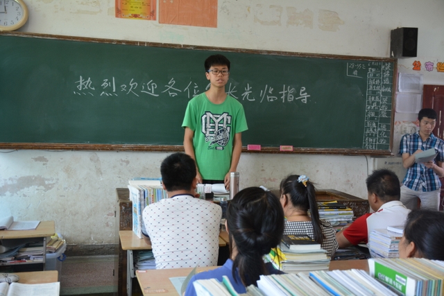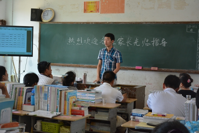主会场的会议实况同时传输到各班,许多同学和家长在教室开听校长报告。