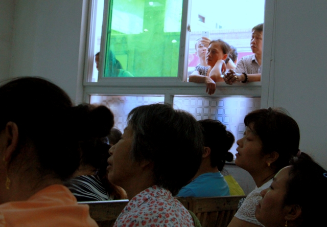 看这样即使站在窗外也要认真听报告的家长,就知道我们校长讲得有多么好。
