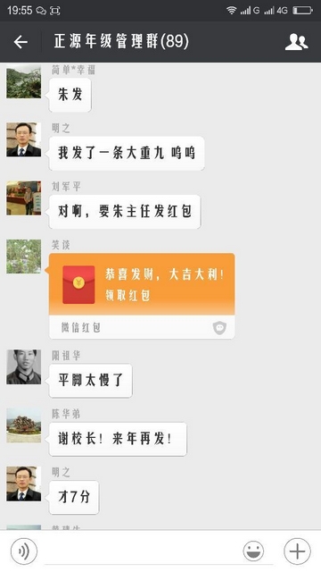 办公室里沸腾了!微信群里沸腾了!罗校长、梁总监在微信里发起了红包,高三年级主任朱明之发起了红包,其他相关人员不停地抢着红包,也情不自禁地发着红包。没有抢到红包的老师强烈地要求校长、梁总监再发第二轮、第三轮红包,门庭若市,热闹非凡。宿管部主任周文根即兴来了两句:天翻地覆慨而慷,正源高考把名扬。宣传处郑少君主任马上接了两句:各项指标居第一,连年神话震三湘。