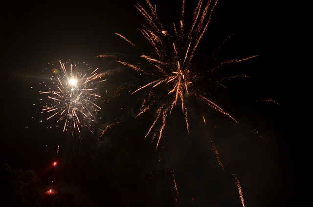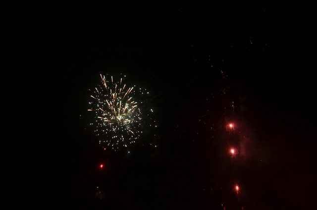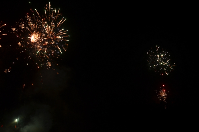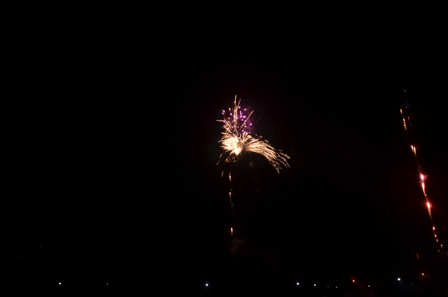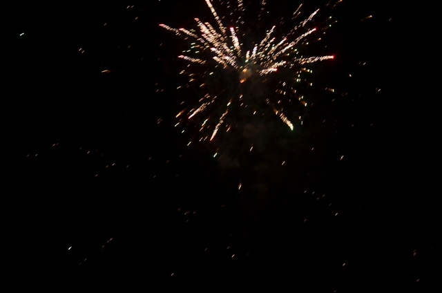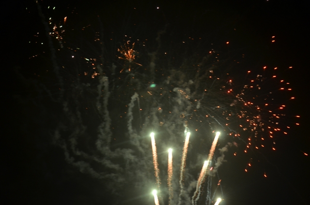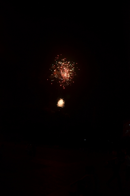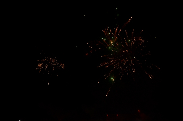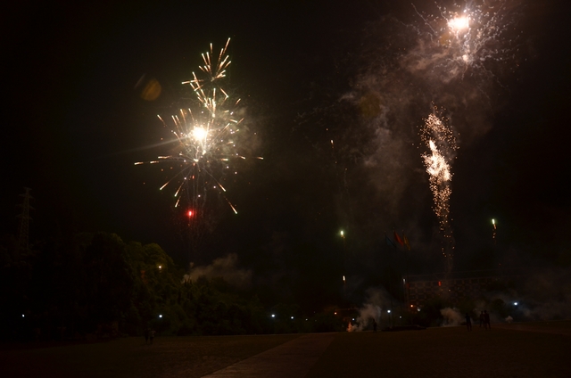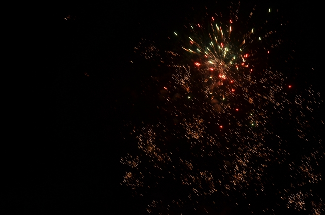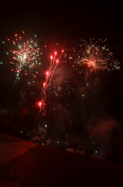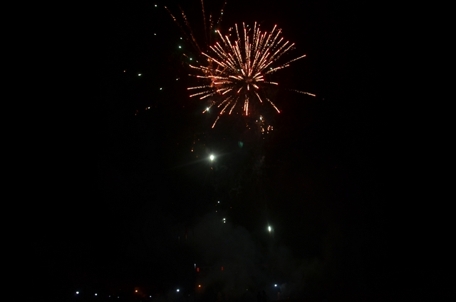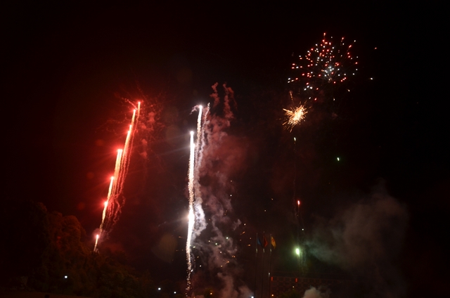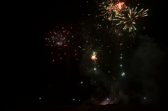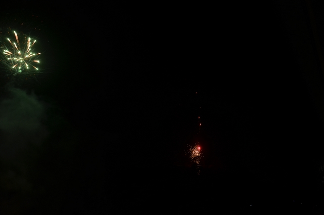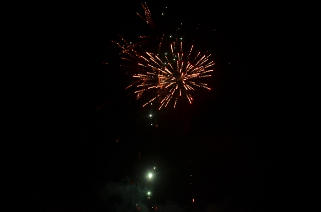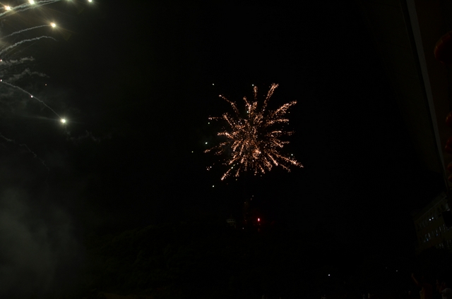 8:30分,小学部第六届兴趣小组汇报演出临时中止,东山、西山、国旗台下、中学生运动场、小学生运动场,五个地点同时燃放起烟花。一时间,红焰冲天,礼花布满夜空,五彩缤纷,耀眼夺目。广场上一片欢腾。