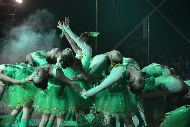 本台晚会形式多样,武术、舞蹈、相声、话剧、快板、乐器演奏、合唱等节目丰富多彩,节目编排科学合理,一波未落,一波又起,一个高潮接着一个高潮,波澜起伏,高潮迭起,令全场师生心潮起伏,掌声一浪高过一浪。演出服装、道具精心准备,音响、灯光虽因陋就简,但调试合理,给整台演出增色不少。