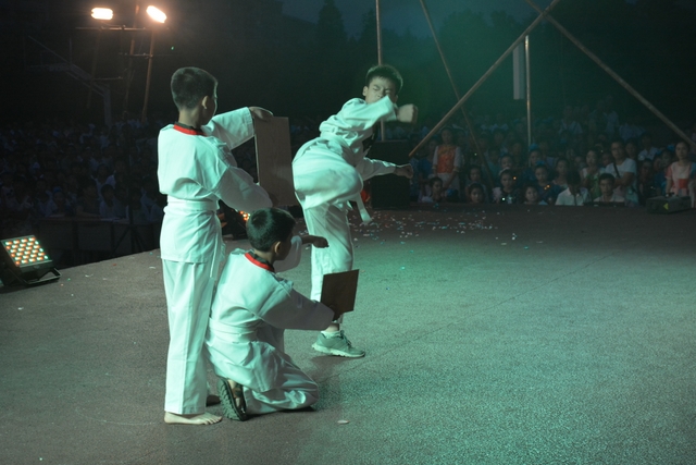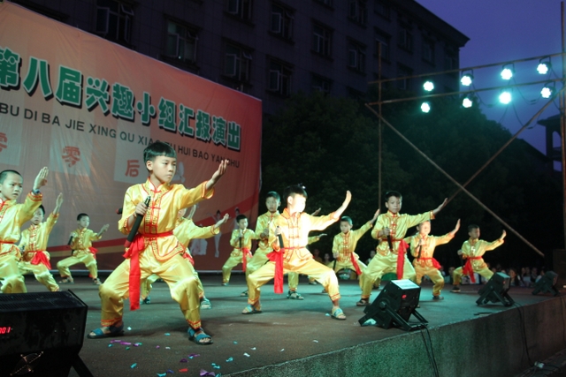 中华武术渊远流长,在正源体育教学中得到了很好的传承。7点30分,整台演出在武术表演中拉开帷幕。正源的小朋友棍术、刀术、拳术及腿上功夫都非常了得,十八般武艺样样精通,一招一式虎虎生风,夺人心魄,尤其连续踢断四块小砖,令全场师生惊心动魄,惊诧莫名。舞蹈《我最捧》将深睡的万物生灵从悠扬婉啭的鸟鸣声中慢慢苏醒,乐曲喜悦欢快,舞蹈曼妙多姿。舞蹈《茉莉花》一袭绿装,婀娜多姿。与东方内敛风格的舞蹈不同,爵士舞蹈《铃声响了》则是另一种风格,柔弱中有激情,有调皮,有动感,有豪放。伴随着经典的乐曲童谣,舞蹈《小脚丫》舞出了童贞童趣。太阳眨眼睛,鸟儿唱歌听,《大王叫我来巡山》,不粘人的小妖精,看遍了世上的美景,体现了学生的纯真多情。现场书法展示,现场画作展示,从一个侧面充分反映了正源书法、绘画教学的成果。《我爱我校》以快板的形式,多层次全方位歌颂了对学校的深情厚意。朗诵《疯娘》采用多种朗诵方式,多角度展示了蓬头垢面的流浪疯娘作为母亲对儿子刻骨铭心的大爱。对口相声《超级主持人》采取夸张幽默的手法,讽刺中令人捧腹。童话剧《滥竽充数》一波三折,表演得声情并茂,惟妙惟肖,教育孩子要有真本领,千万不要做滥竽充数的南郭先生。乐器合奏不管是吉他合奏还是笛子合奏,旋律优美,时而如高山流水,时而如万马奔腾,充分展示了正源乐器教学方面的成果。本台演出最后在六年级学生大合唱《毕业歌》、《栀子花开》中落下帷幕。