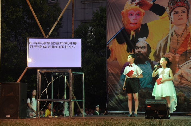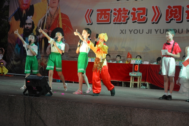 6月26月晚上7点30分,一场“弘扬国学,品读西游” 文化大餐在学校小学生运动场激情上演。这场小学三年级《西游记》阅读课知识竞赛的举办,是我校深化语文教改,弘扬国学经典的成功范例。