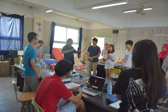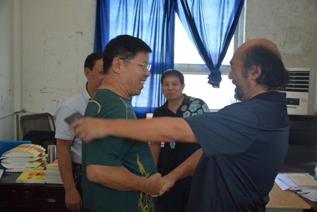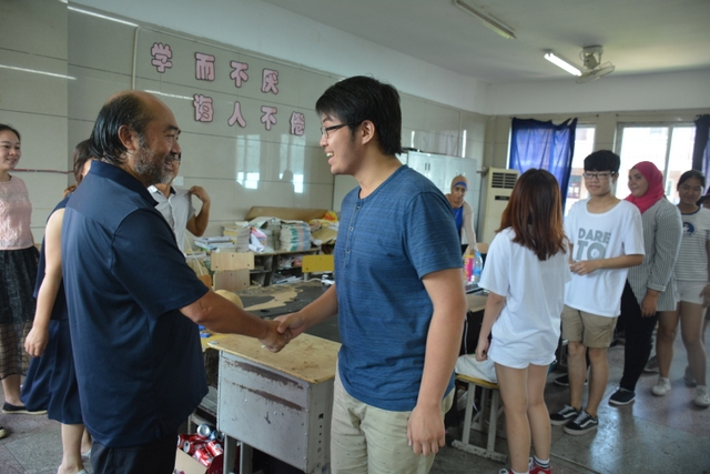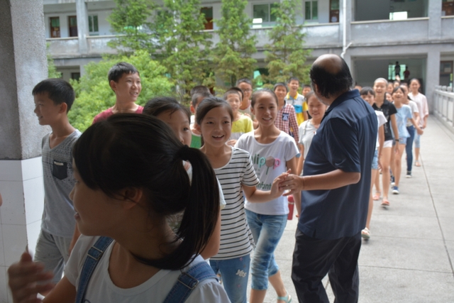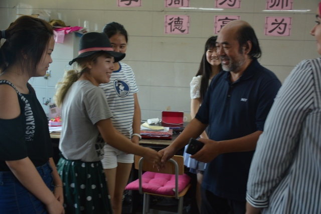 罗校长在校长助理廖睛、小学部学部主任罗俊豪、培训部主任刘静老师的陪同下,兴致勃勃地走进办公室,向志愿者挥手招呼,高喊同志们辛苦了。刘静主任先简要介绍了校长及志愿者负责人清华大学的学生陈泽宇,罗校长饱含深情即兴发表了讲话,陈泽宇同学进行随声翻译。罗校长说:“我率williamhill威廉希尔亚洲官网工作满10年的40多位同志到美国考察度假,刚刚回来就急忙赶来看望大家。首先代表williamhill威廉希尔亚洲官网15000多名教职员工对同志们的到来表示最热烈的欢迎!对你们的辛勤劳动说一声辛苦了,你们克服了天气炎热、条件简陋、招待不周等诸多困难,将幸福微梦想国际夏令营搞得有声有色,确实不容易,在此表示衷心的感谢!今天你们在中国正源作志愿者,作贡献,以后欢迎你们有机会去美国正源去参观,去作客!” 离开办公室前,罗校长跟每一位志愿者握手道别。
