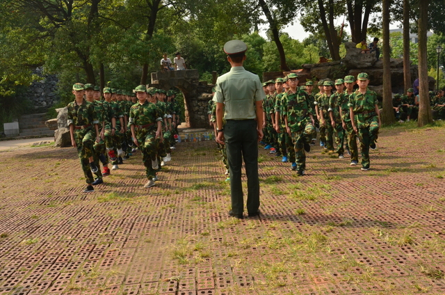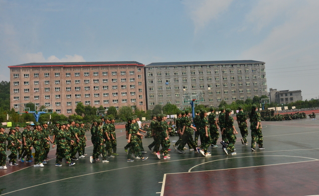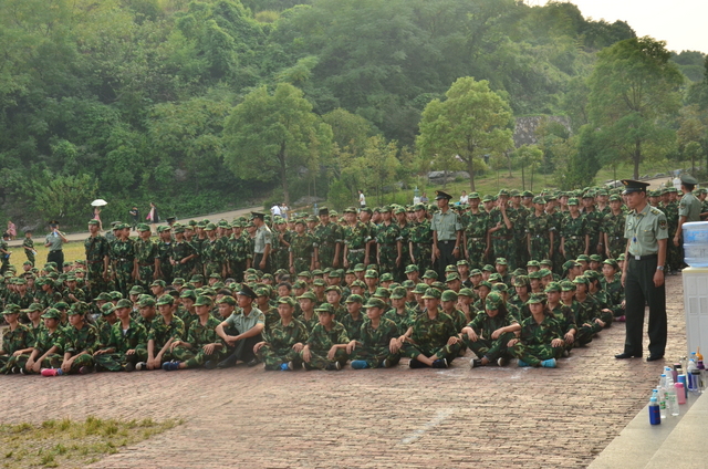 下午四点多钟,初中部举行中期抽样会操,三个班的同学汇报了他们三天来的军训成果。立正,稍息,跨立,敬礼,向右看齐向左看齐,向左转向右转向后转侧身45度转……同学们聚精会神,表演得非常认真,台下报以一阵阵热烈掌声。286班同学的表演受到部队首长的充分肯定和表扬。
