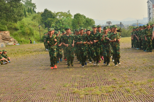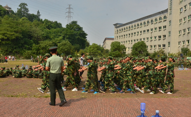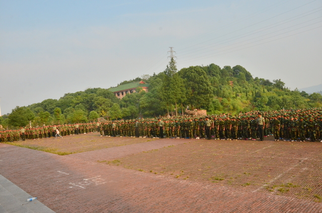 今天的军训场地更热闹。齐步走刷刷刷刷的脚步声,跑步走“一二三四”的口号声和董董董董的节奏声,拉歌“一二三,快快快”、“一二三四五,我们等的好辛苦”、“一二三四五六七,让人等的好着急”的呼叫声,“日落西山红霞飞,战士打靶把营归”、“学习雷锋好榜样,终于人民忠于党”的歌声,此起彼伏,响彻云霄。