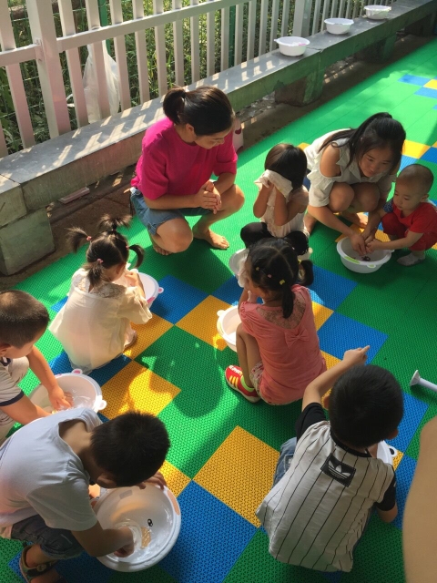 每天都有户外活动的时间,散步、爬山、沙坑、运动场、水池等,也有园艺、农作等活动。