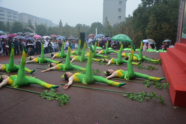 寒风微微,细雨沥沥。演员们的热情和同学们的期盼没有被天公的不作美所击退,敢打敢拼的正源人再一次以特立独行的完美表现感染和带动了所有的演员和观众,台下一杆杆雨伞有如一朵朵鲜花绽放,形成一道难得一见的别样风景。当四位主持人冒雨走上前台,以他们浑厚、脆亮的嗓音开始道白的时候,全场掌声响起,呼声雷动。
