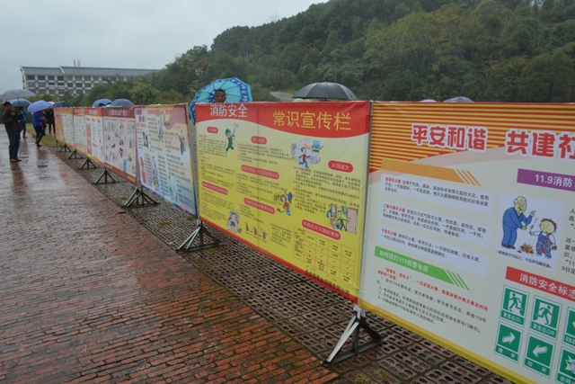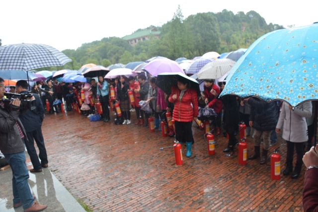 11月9日,是全国“消防日”。上午,耒阳市消防委员会在我校举行2016年119消防安全宣传月活动启动仪式。消防官兵代表、消防安全重点单位员工代表、社区居民代表以及我校全体生活老师、各食堂员工代表、初三与准高一全体学生共4000余人冒雨参加会议。