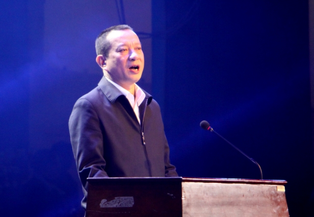 演出结束,市委常委、市委宣传部部长刘洋,副部长谢俊清,罗校长和梁晓芬总监同本节目正源音乐指导老师上台,祝贺演出成功,并与演员们合影。