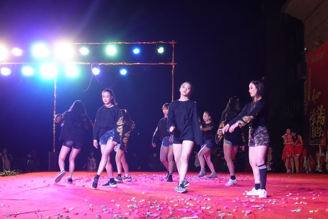 CRAZY(街舞)+龙狮率先亮相。八个女生一袭黑色宽松上衣,牛仔短裤,长发飘逸。劲爆的旋律,刚劲的动作,激情四射,充满青春活力。四个男生一身牛仔套装,动作潇洒,器宇轩昂。金龙出场,时而穿梭舞,时而贴背舞,时而倒地舞,时而舞出造型,花样翻新。两只雄狮张牙舞爪而来,摇头踢腿,耀武扬威,扣人心弦。临末,两只雄狮昂首挺立,出其不意地各自抖出一条红绸标语:国泰民安;校运昌盛!顿时,台下哨声、呐喊声响成一片。