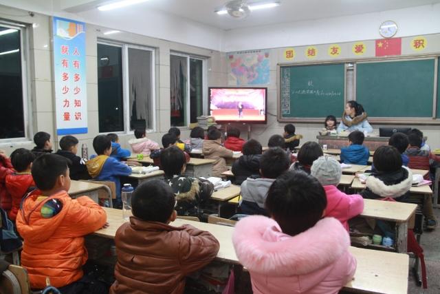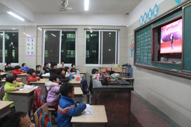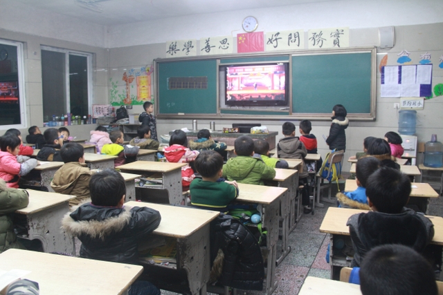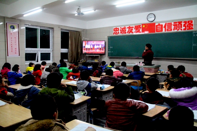 小学教室灯火通明,每个教室的大屏幕电视都在看晚会直播
