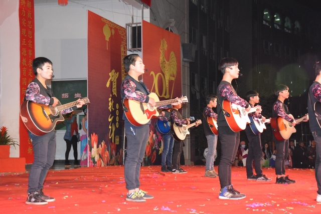 学校乐器教学成效显著。小学部每个年级都学会一种不同的乐器,四、五、六年级的同学们分别以竹笛、长笛、葫芦丝以及口风琴,演奏了《歌声与微笑》 《贝加尔湖畔》 《月光下的凤尾竹》 《过新年》 《荷塘月色》,每个年级三五十人至近百人不等。初一至高二的同学表演了古筝曲目《茉莉花》。优美的旋律,袅袅的余音,或艳丽、或典雅、或庄重素净的着装,令观众赏心悦目,如醉如痴。初二年级同学的吉他弹唱《朋友》,把纯洁真挚的朋友之情演绎得震撼人心。