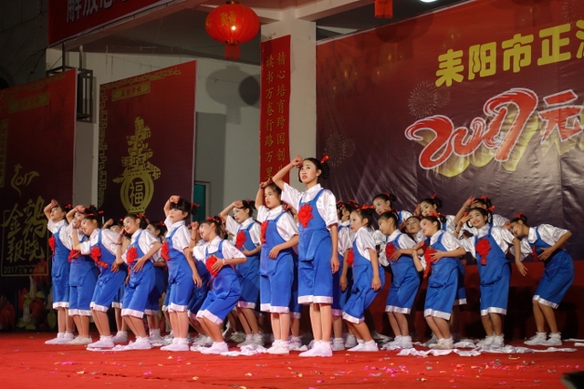 善舞是同学们的第一大特色。小学部学生为大家带来了少儿舞蹈串烧《快乐的布谷》 《劳动最光荣》。森林里传来一声声“布谷”“布谷”的欢快叫声,一只只可爱的小布谷鸟在森林里展开翅膀,翩翩起舞,霓裳云衣,珊珊可爱。雄鸡的叫声唤醒了三四十个热爱劳动的小姑娘们,她们身穿白褂蓝背带裤工作服,胸前戴着大红花,看来个个都是小劳动模范。或执锹,或执壶,开始了一天的紧张劳动。汗水模糊了眼睛,取出毛巾擦一把再干。劳动中充满歌声,号子声,充满快乐。雨打芭蕉、小荷飘香。舞蹈特长生们表演的舞蹈《风酥雨忆》充满诗情画意。同样优美的还有她们表演的舞蹈《喜鹊喳喳喳》,裙袂飘飘,把喜悦播洒人间。而小学部同学和老师共同表演的歌舞《大王叫我来巡山》,幽默风趣,旋律欢快,令人开怀。