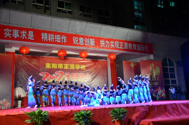 开场舞之后,罗校长发表新年致辞。罗校长简要回顾了2016年辉煌的高考成绩和校园文明建设累累硕果,阐明了2017年的奋斗目标:继续把高考作为中心工作来抓,两年以后二本以上达到1200人,占耒阳市一半。在此基础上,我们还要高度重视两大新主题:首先,继续推进以校园文明建设为重点的素质教育向纵深发展;围绕继续推进正源教育国际化方向努力。