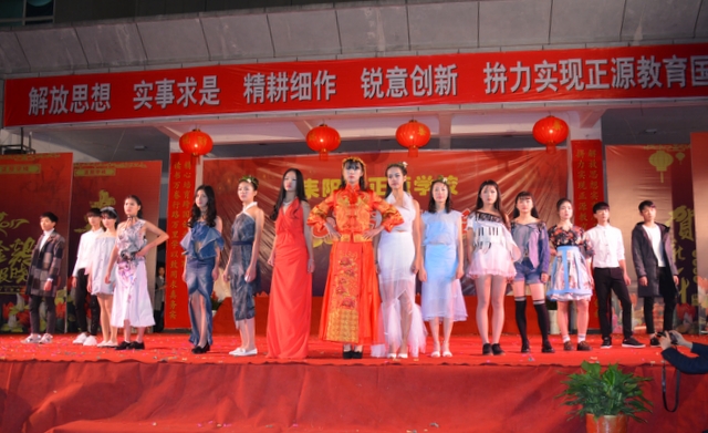 环保是当下人人倡导的美德,走秀是精彩养眼的时尚表演。当二者融为一体,将带给我们怎样震撼的演出,高中部的15位同学带来了精彩的表演《环保时装秀》,帅哥靓女,奇装异服,款款劲步,美不胜收,台下掌声雷动。