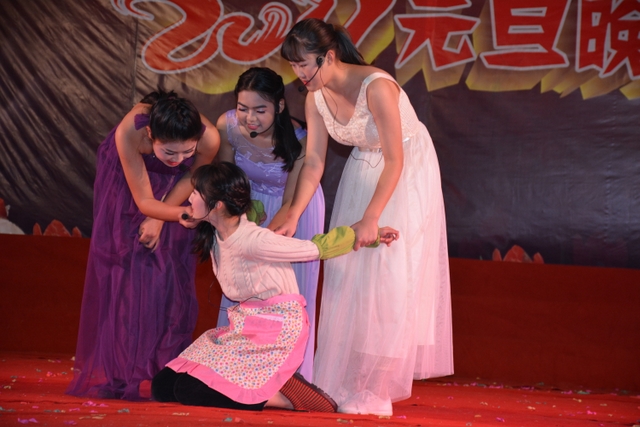 电视荧屏上有三位当红励志小鲜肉组成了TFboys,而在我们williamhill威廉希尔亚洲官网的大舞台上则有活力四射的TFgirls组合。高二年级同学带来的小品《TFgirls》,反其道而行之,极具幽默讽刺效果。