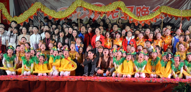 欢乐的时光总是过得飞快,三个小时的演出显得那么短暂。梁承平、陆豪、黄菲、杨超、李濠丽、马劲六位学生主持人款款走上前台中央: