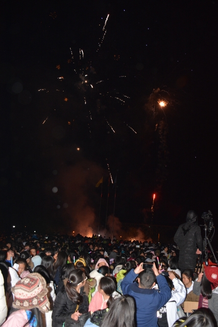 一束接一束的升空礼花照亮夜空,响彻校园。