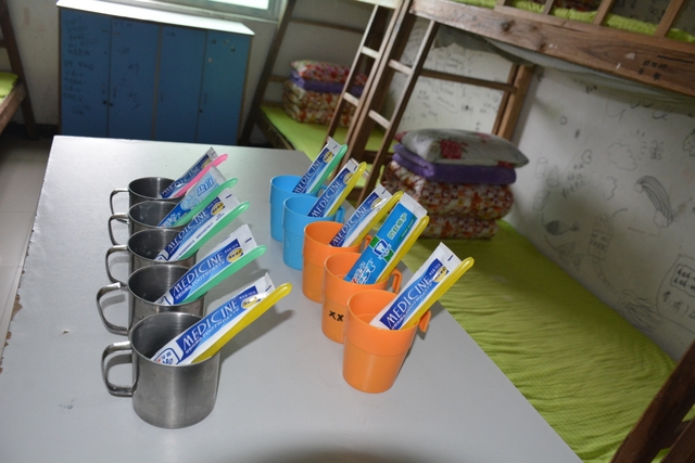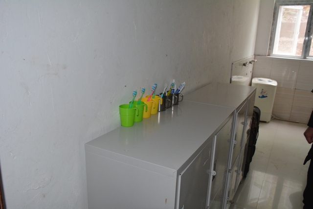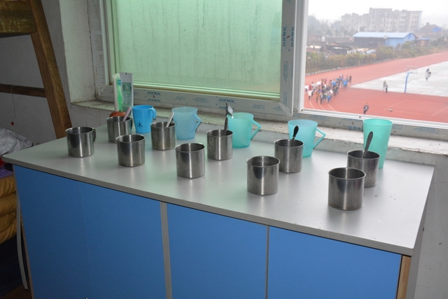 最后来到西苑。由于西苑是单间,学生为五六年级和初一的部分学生,两方面都便于管理,所以寝室内外都有条不紊,一尘不染,整洁如新,赢得大家啧啧称道。