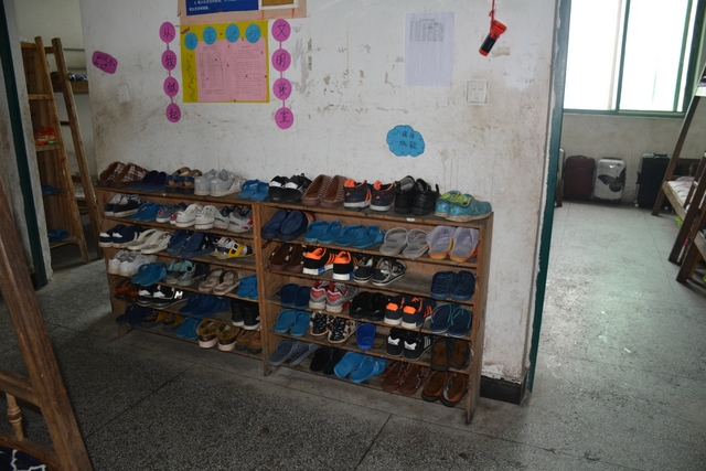 检查的第一站是女生宿舍九号楼。九号楼栋长李吕江带领检查组成员逐层逐室查看。大家看到,过道上,衣服晾晒得整整齐齐,鞋架上的鞋子也摆得整整齐齐,地面上干干净净。走进室内,被子的叠放,物品的摆放,一切井然有序,空气清新,令人赏心悦目。陈副校长高度肯定了九号楼的工作。他说,九号楼住着2460多名初高中女生,仅有20个生活老师,却把工作做得如此之好,很不容易。今后一是要保持要坚持,二是要更加精细化,尤其是寝室文化布置要上台阶,使寝室管理更加规范化。