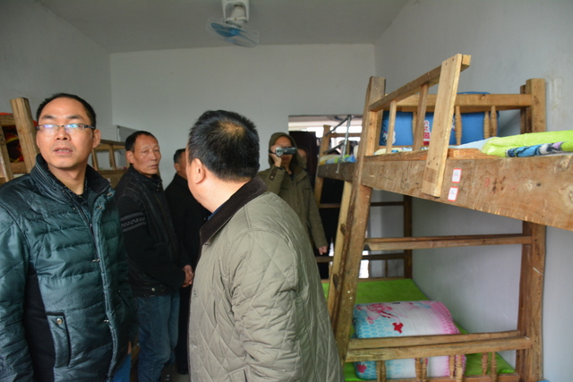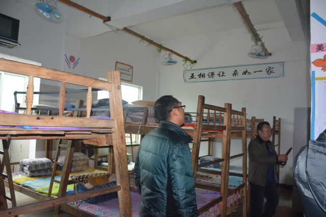 1月15日上午,陈副校长再次率宿管部、宣传处等相关处室负责人检查男生宿舍,这次检查的是初三男生宿舍。初三年级主任唐循南、德育主任曹秋文引导检查。