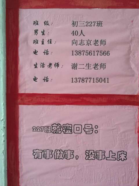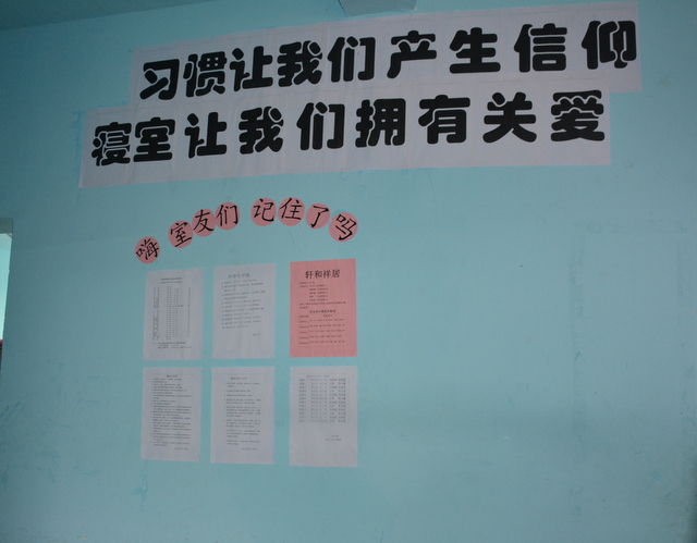 对初三男生宿舍的检查,相比其他在校年级是在后面。但是,当人们不论是走进“样榜室”,还是普通室,给人的印象就是技压群雄,令人耳目一新,为之震撼。不仅被子的叠放,物品的排放,整整齐齐,一丝不苟,尤其值得称道的是便池洁净如新,寝室文化多姿多彩,令人爽心悦目。大家一致认为,作为大多数同学已升入准高一了的这个特殊年级,而寝室整治出这样特殊的效果,难能可贵,充分说明,这些学生同样具有上进心,不服输,而且发愤图强,绝不自暴自弃,班主任工作不简单,年级管理不简单。