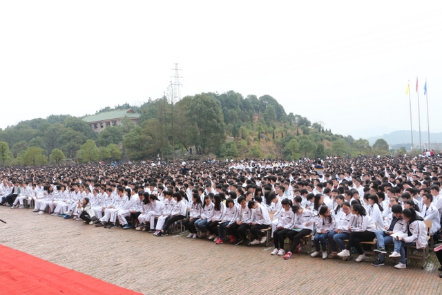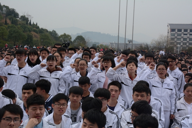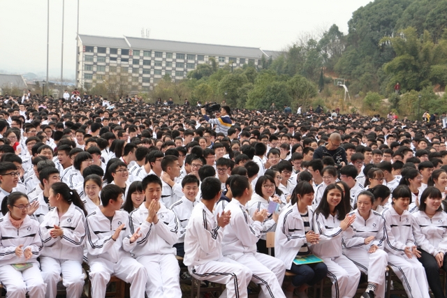 最后,15000名师生全体起立,为高三学子鼓掌、加油。此时,阳光穿过厚厚的云层,映照在莘莘学子的脸庞上。彷佛预示着他们的未来也如同阳光般灿烂明媚。他们的脸上露出灿烂的微笑,流露出满满的自信和对未来无限的期待。