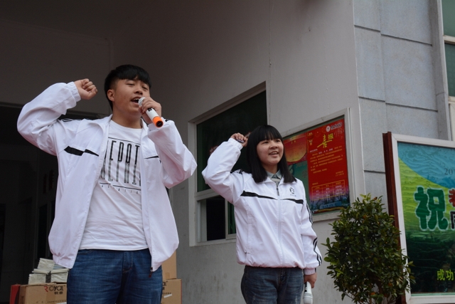早餐过后,各年级各班同学便有序向广场云集。主体教学大楼上悬挂着的十几条宣传标语催人奋进,主席台两侧新换上的对联格外引人注目、鼓舞人心: