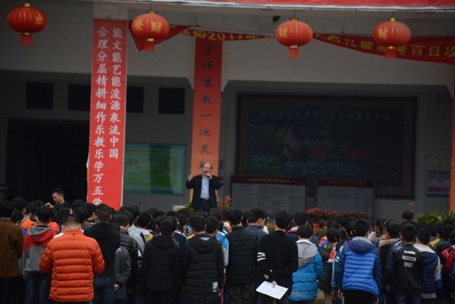 大会结尾,罗校长还不忘鼓励初一的莘莘学子:眼前的分班只是暂时的,考进了名校班和一本班的同学不能骄傲,要再接再厉;考到了二本和本科班的同学不要气馁,要奋勇前进。