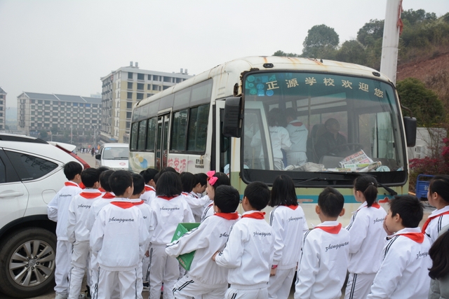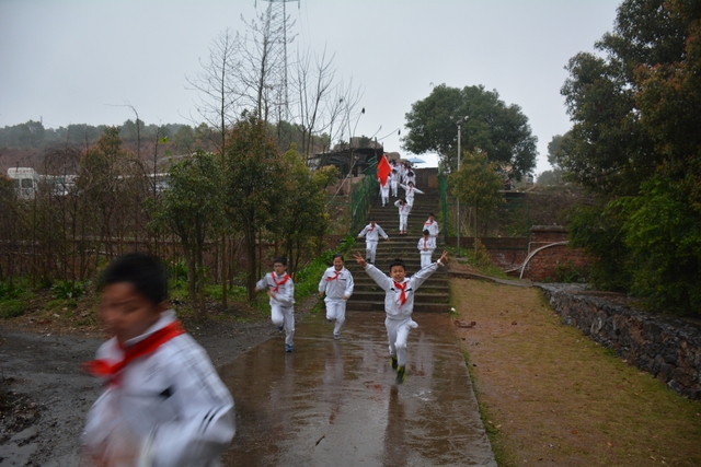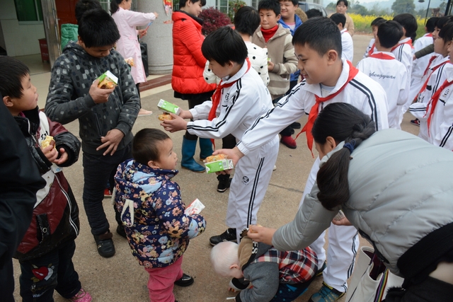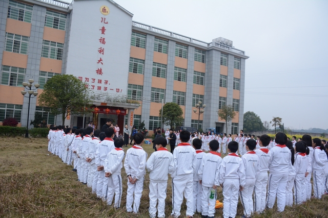 早上八点,微风习习,细雾濛濛。五年级全部17个班的近千名同学穿着干净、整洁的白色校服,手拿扫把、撮箕、垃圾袋和为耒阳市福利院少儿小朋友准备的礼品,在小学生运动场集合,学校陈副校长作了简短讲话后,小学部学部主任罗俊豪、德育主任谢红云,五年级年级主任刘龙军、德育主任陈华弟,以及各班班主任和配班老师,便组织学生浩浩荡荡从西大门出发。只见个个兴高釆烈,精神抖擞,胸前的红领巾在白色校服的衬托下,显得格外鲜艳。