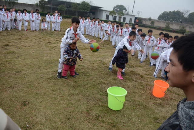 另一路坐校车奔向水东江福利院。158、269两个班的一百多名小朋友,昨天便精心准备好了献爱心的礼物,有新鲜香甜的水果,有五花八门的玩具,有各式各样的面包、饼干、牛奶、学习用品、书籍等。今天来到东江福利院后,先参观了福利院儿童的生活和学习区域,然后和福利院的孩子们一起来到福利院的大草坪上,把一件件礼物送到福利院的孩子手中,为孩子们献上《团结就是力量》《打靶归来》《学习雷锋好榜样》三首大合唱,又和福利院的孩子们同跳舞蹈《小苹果》《大王叫我来巡山》,最后和福利院的孩子们玩游戏“定点扔球”。歌声,舞蹈,游戏给福利院的孩子们带来了快乐和温暖。