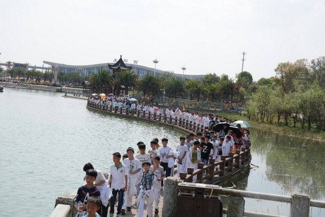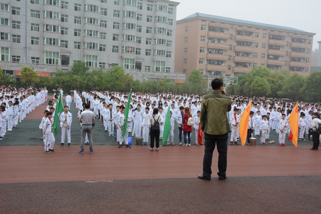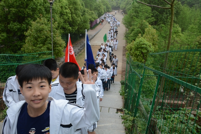 4月7日,我校六年级一千多名师生去顺湖举行远足活动。这是我校今年组织的第二场远足。
