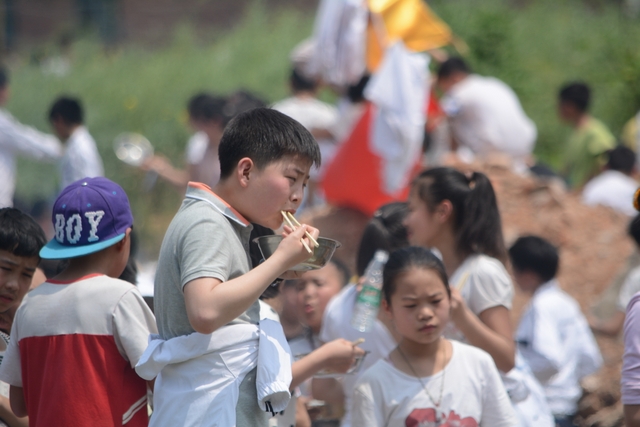 中午11点半,在距顺湖不远的新法院附近,同学们开始了他们的野炊活动。学校的供水车和食堂提供的食材早已在野炊地等候。这块野炊地我们学校上一次野炊活动用过,灶台大多完整,柴禾也剩下好多,真是好地方!看到现马现鞍,同学们兴致更高了。领餐具工具、提水、洗餐具、生火的、包饺子的、切黄瓜的、下面条的、忙得不亦乐乎。这群十一二岁的孩子们,还有那些刚从大学校园走上工作岗位的年轻的班主任,野炊对他们来说毕竟不是件容易的事情,笔者问一位年轻的女班主任:煮过饺子吗?她说,只吃过没做过。可是从他们身上并没有看到气馁,而是满脸洋溢着自信,有的同学竟然把辣椒灰也加入到饺子馅中,这种饺子在锅子里浮起来,是一抹淡淡的红,有点像溪水中徜徉的金鱼。一个小时后,师生们吃着自己亲手做的饭菜,心情真是一个爽!吃过饭,同学们用水浇熄柴火,冷却灶台,把垃圾清理干净,尽量恢复原貌。