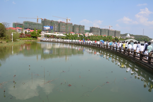 9时许,23个班级以二路纵队的形式从学校浩浩荡荡出发,宛如一条白色长龙。一路上,同学们精神饱满,队伍整齐。经过近两个半小时步行,全体学生无一人掉队,全部到达目的地顺湖区域。