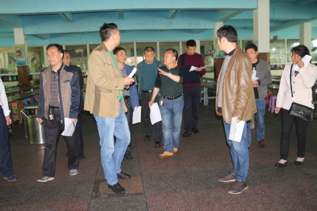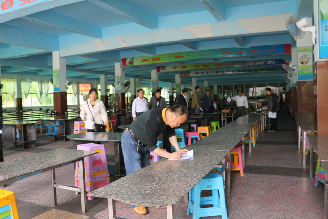 4月18日上午,在陈副校长、蒋助理的带领下,由后勤处、宣传处、食堂管理处负责人及各食堂主任全员参与,对全校食堂及加工部进行了认真细致的检查,并作出了实事求是的评价,综合评分前三名是:第一名二食堂;第二名五食堂;第三名四食堂。
