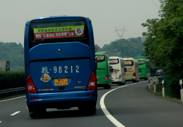 十二点零八分,旅游指挥车——校长的专车别克越野车准时发车,六辆豪华大巴紧随其后,满载三百余人的车队浩浩荡荡向目的地挺进。车上,老师们抓住难得的集体放松的机会,因陋就简,迅速支起牌桌,有的打扑克,有的打纸牌,有的打纸麻将,有的在手机上看电视剧,各得其所,其乐融融。