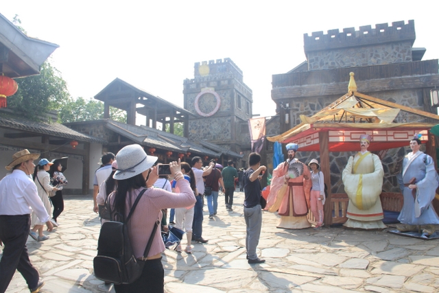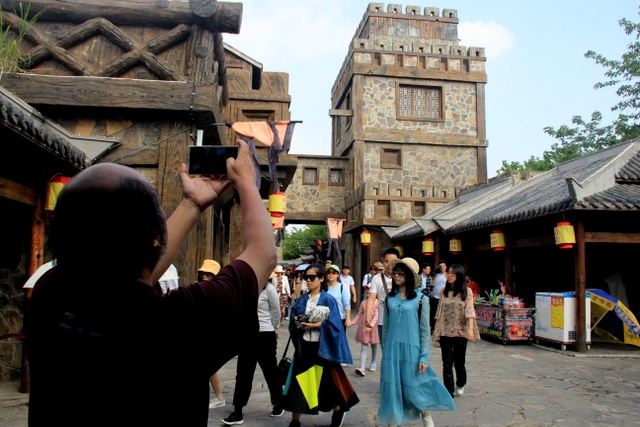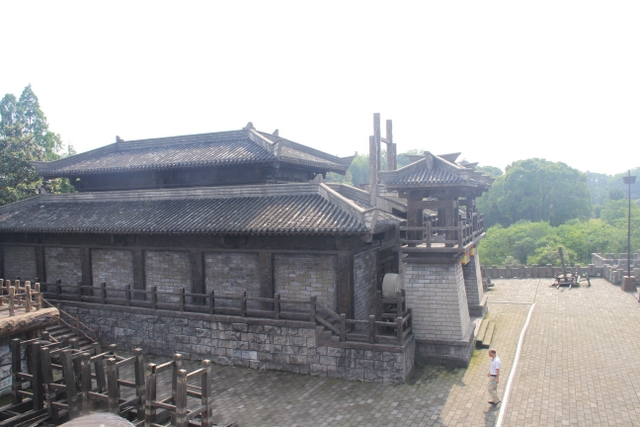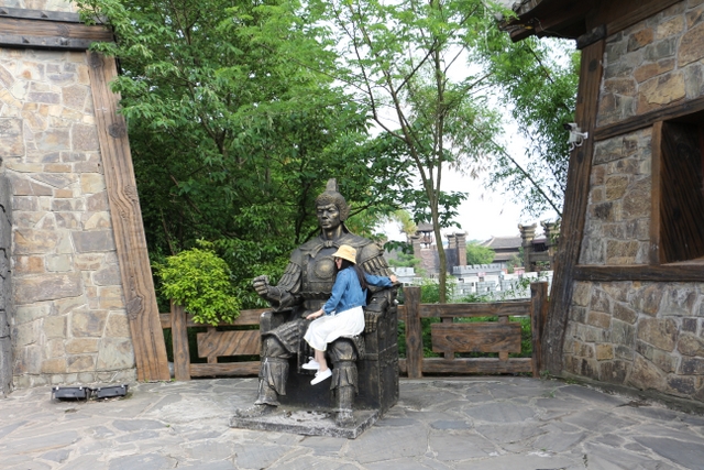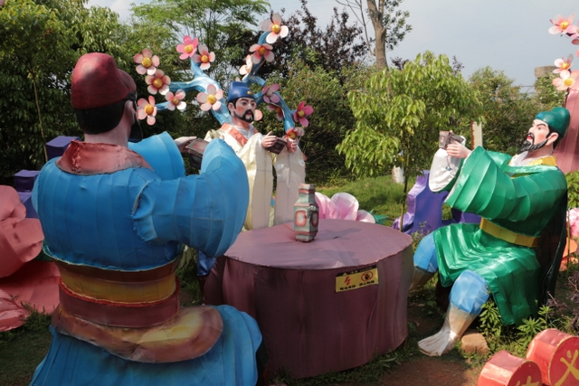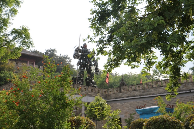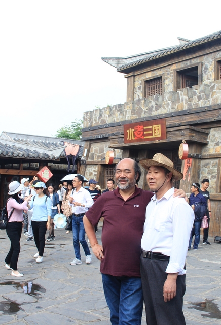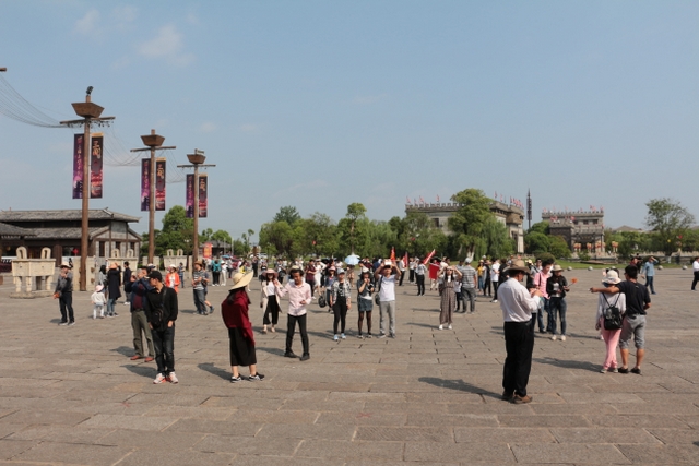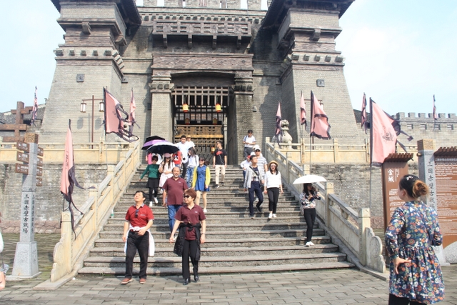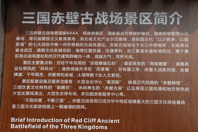一路春日暖阳。下午两点,到达赤壁三国古战场。在巍峨的仿古城门前合影后,导游引导老师们沿着仿古商业街边走边讲说,周瑜、关羽等赤壁之战中孙刘双方名将的铜像不时出现在人们的视野,桃园结义、舌战群儒、草船借箭、巧借东风等故事场景分布各处。老师们登上最后边长江之滨七层49米高的“塔楼”,方圆几公里的影像尽收眼底,当年火烧曹营战船的惨烈场景仿佛就在眼前,长篇电视连续剧《三国演义》的片尾曲《历史的天空》仿佛又在空中回荡: