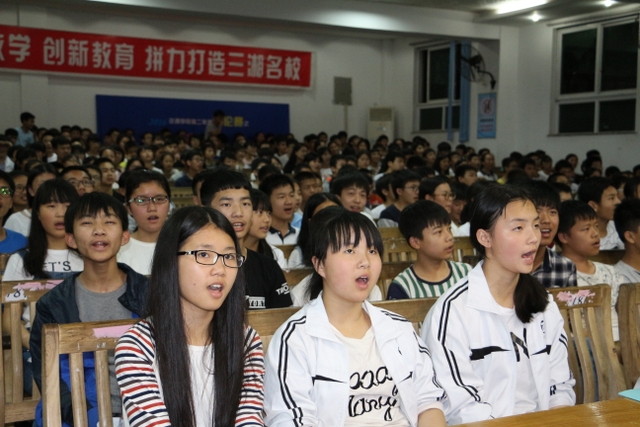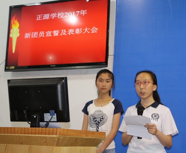 大会在校团委书记周文根带唱团歌《光荣啊,中国共产主义青年团》中拉开序幕。随后,来自准高一1609班的雷婉娟代表老团员作了发言。雷婉娟同学联系自身实际,畅谈了加入团组织后自己在学习,尤其在与同学交往、沟通以及能力提高方面的深切感受;来自初二年级259班的陈施余同学则代表新团员表达了自己对团的认识以及入团后的决心。