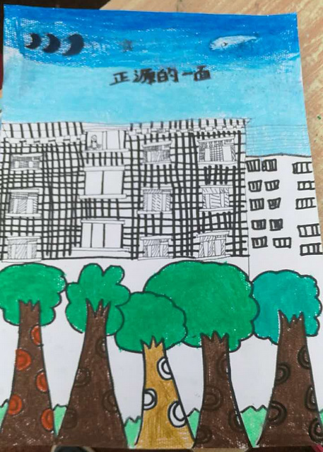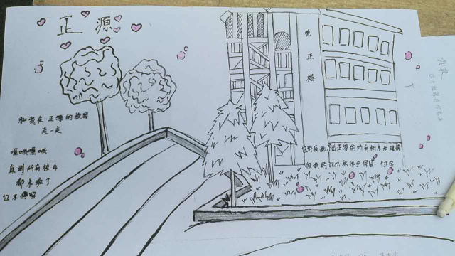 有画教学楼的,有画宿舍楼的,也有画食堂的,画运动场主席台的,还有画舞龙的,画远足的……不一而足,大有“精鹜八极,心游万仞”之势。当十一点钟大赛结束,同学们各自举起手中的画作时,琳琅满目,让人眼花缭乱。一张张充满自信的笑脸,让人眼前仿佛跃动起吴道子、郑板桥、齐白石、徐悲鸿、达.芬奇、毕加索……的身影。