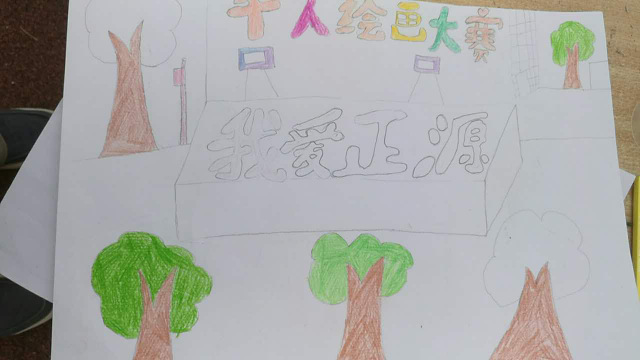 三年级216班彭诗琪同学画的也是《美丽的正源池塘》,红日,白云,蓝天,垂柳;平展的荷叶,盛开的荷花,含苞待放的荷花,长着毛刺的荷梗,尚未成熟的莲蓬……物象丰富,色彩鲜艳,画面清新,让人目不转睛,叹为观止,不忍离去。