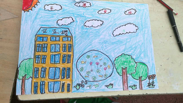笔者在巡视的过程中,不时为同学们丰富的想象、巧妙的构思、精工的用笔、协调的着色所吸引,所惊叹。六年级254班贺思捷同学画的是学校的荷花池塘,画面上题着:接天莲叶无穷碧,映日荷花别样红。还写着:老师就像无私奉献的荷花,培育了许多美丽的小荷花,望以此画感谢老师。三年级221班龙冰雪画的也是《美丽的池塘》,池塘里小蝌蚪摆动尾巴自由游动着,或群游,或单枪匹马。小鱼则在玩“O”字造型,仿佛有鱼在导演似的。池塘里的水被微风吹拂,皱起一层层波澜。池塘周围是小树和石板路……学生观察事物是多么细致。一年级313班贺少灵同学画的是《家(校)园》,教学楼左上角是一轮红日,画面上方是蔚蓝的天空点缀着朵朵白云,画面中间有飞舞的蝴蝶和蜻蜓,下面有一束一束的鲜花和小草,两边有小树,好一个温馨的世界。一年级315班周丹桦同学,在画面上写着:williamhill威廉希尔亚洲官网bangzhu我学习,peiban我成长,我爱williamhill威廉希尔亚洲官网。小小年纪,连汉字都写不全,就懂得感恩,可见williamhill威廉希尔亚洲官网对孩子们的影响有多么深刻。