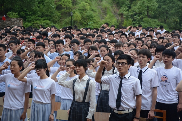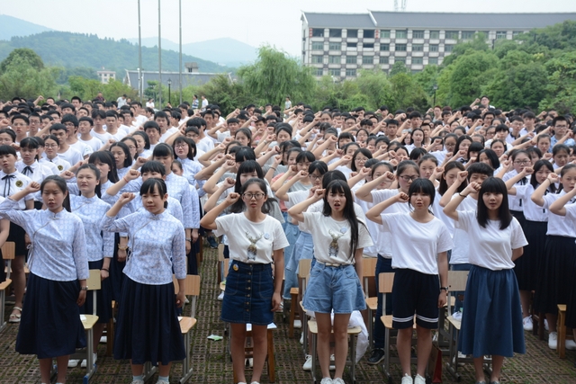 在王主任讲话后,进入宣誓环节。全体考生举起右手,庄严宣誓:“自觉遵守纪律,自觉维护考场秩序,坚决服从考试工作人员管理,绝不违纪违规,信守报考承诺,诚信参加考试,沉着细心考出佳绩!”洪亮的声音回荡在秀丽的青麓山,让人心潮澎湃。