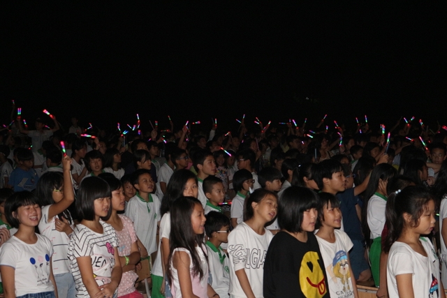 当晚的会场座位排列别致有序,不仅更适合于各个不同方位的同学观看表演,也方便影像人员从不同角度拍照摄像。晚七点过后,小学部全体同学便身着整洁的夏季校服,在划定的区域整齐落座,前来观看自己孩子演出的家长络绎不绝,也在指定区域位置就坐。