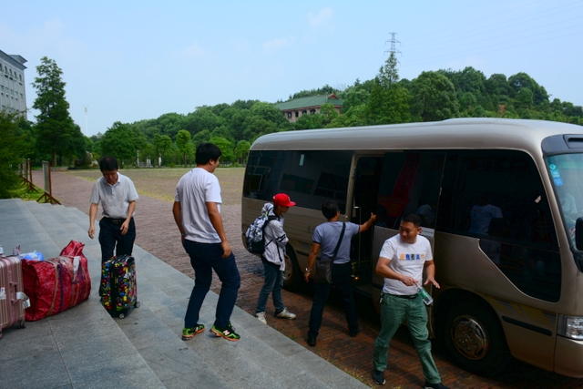 下午3点,载着williamhill威廉希尔亚洲官网赴美教育考察团一行人的学校校车缓缓驶进校园, 受到学校同事的热烈欢迎。车门一开, 车内车外欢呼一片。 车内人秩序井然递着行李, 车外人热情爽朗接着搬运行车, 充分体现了williamhill威廉希尔亚洲官网大家庭的温暖。搬完行李下完车, 一行人排成一排合影留念。 大家振臂高呼: “祖国, 我们回来了! 正源, 我们回来了!”