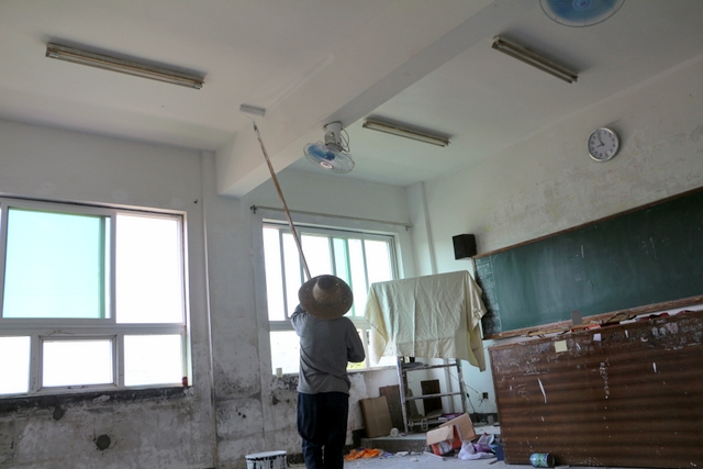 为了给师生创造一个良好的环境----我校抓抢工时粉刷教室寝室装修教师公租房