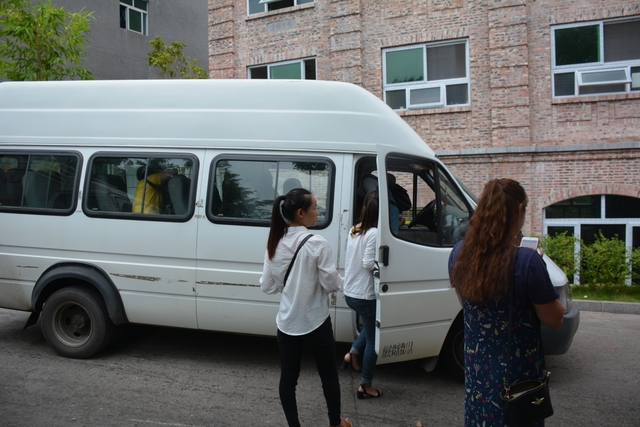 学校的车子就在正源10号宿舍楼下面等